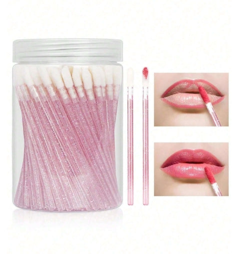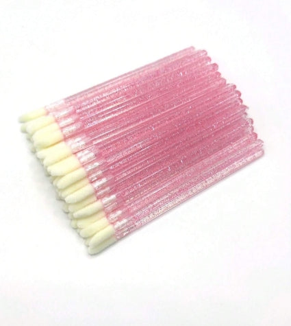 100pcs Crystal Powder Pink Disposable Lip Brushes + Bottle