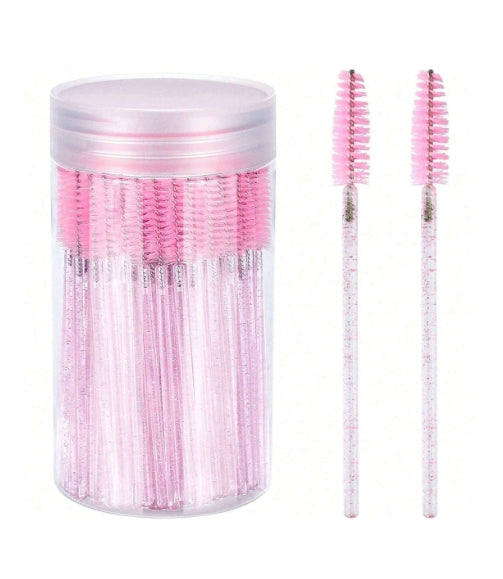 100PCS Hot Pink Eyelash Brushes + Bottle
