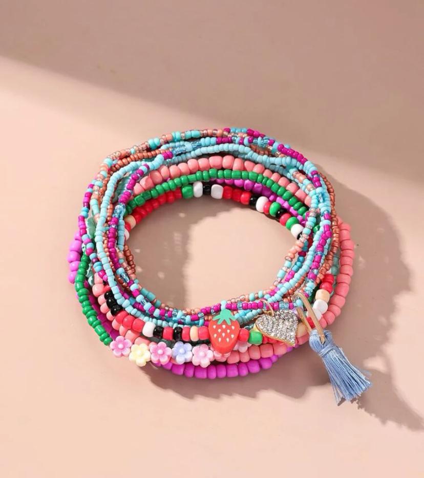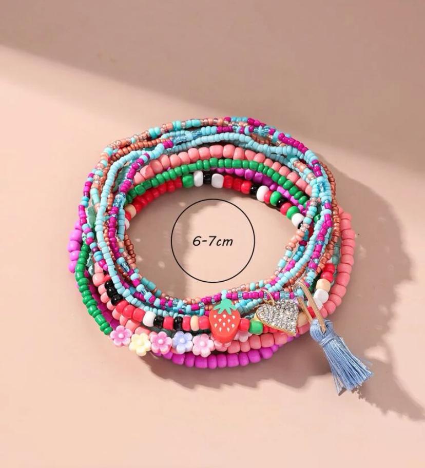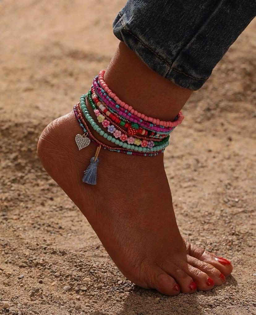 12pcs Random Heart & Tassel Charm Beaded Anklet