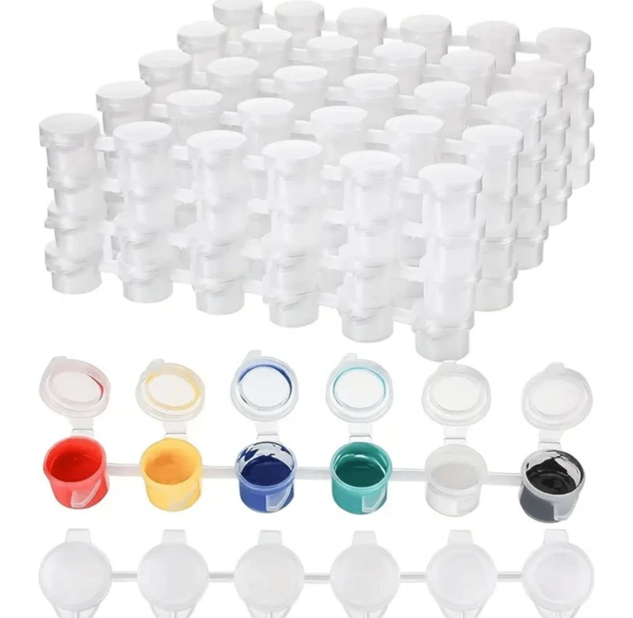 90pcs Empty Paint Pots, 15 Strips Acrylic Mini Paint Containers with Lids, Storage For School Arts & Crafts Painting.