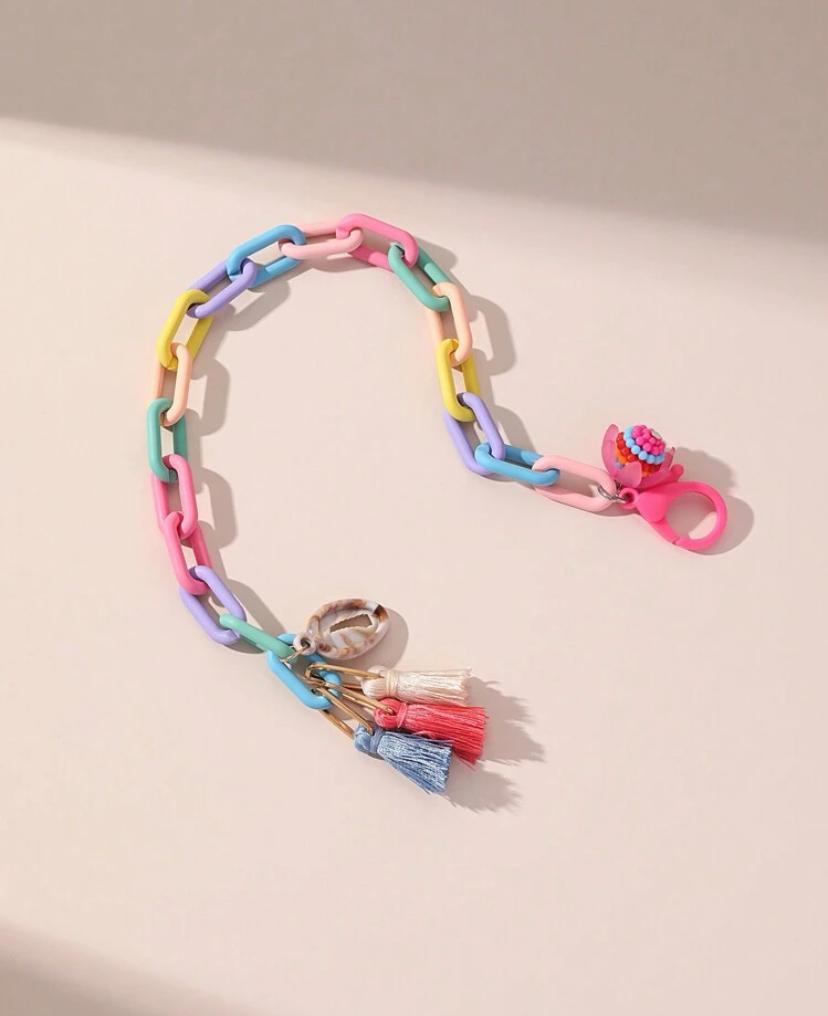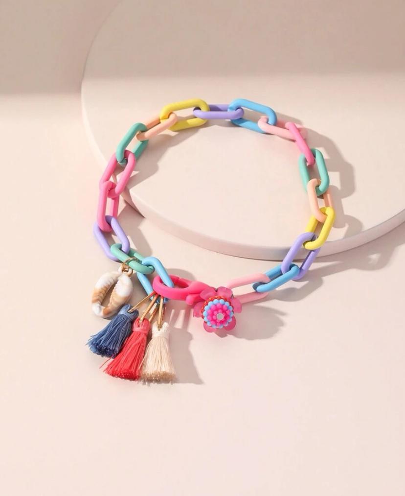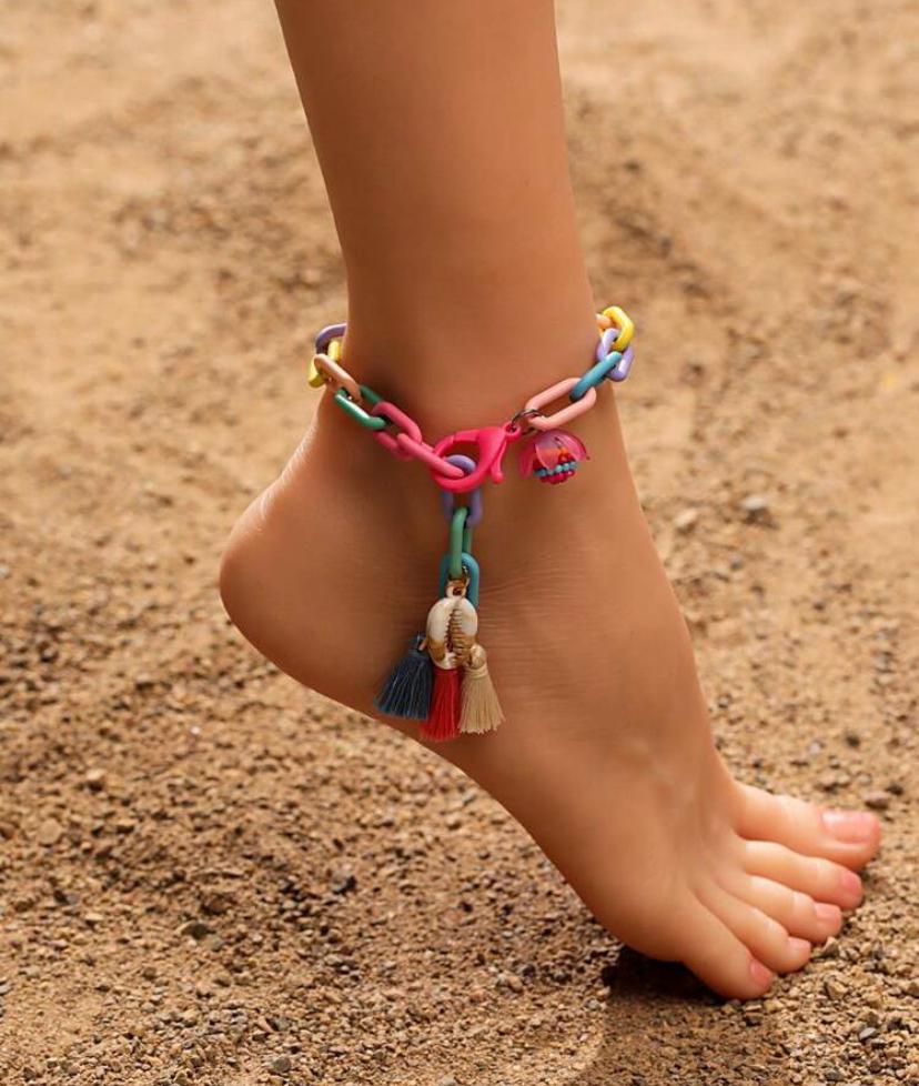 1pc Colorful Tassel & Flower Design Chain Anklet