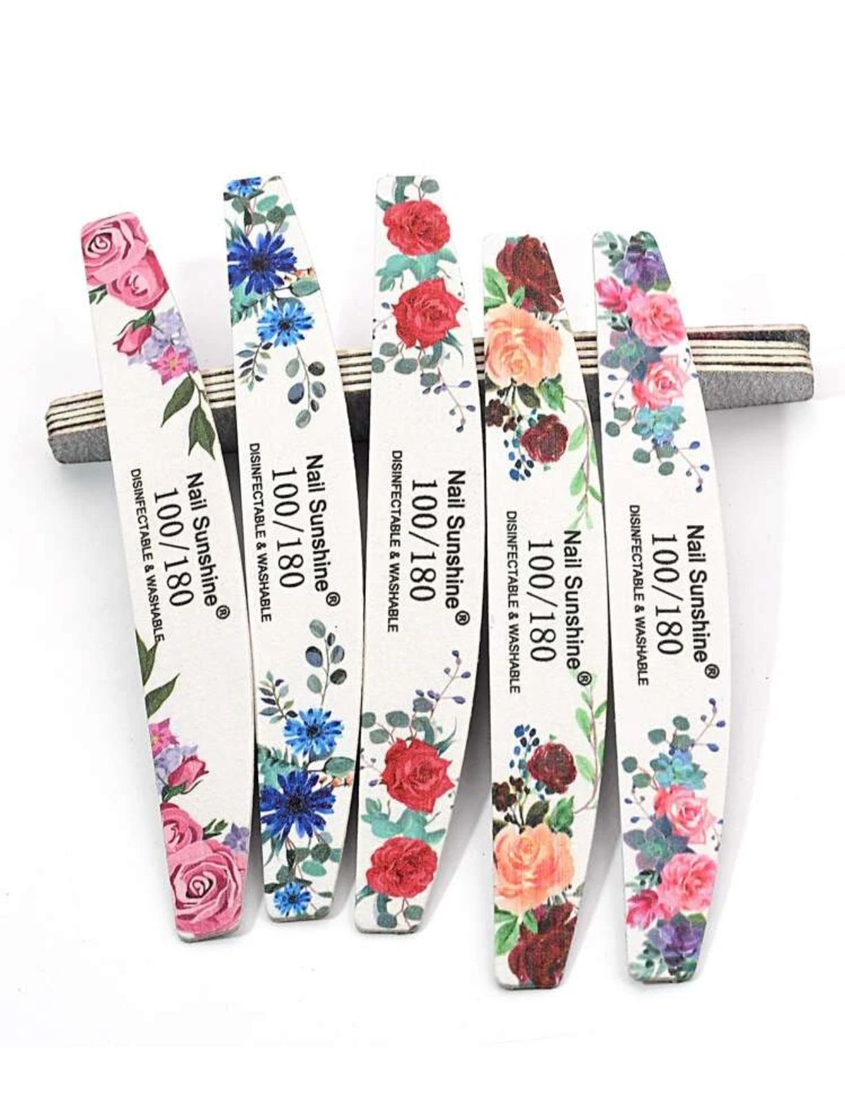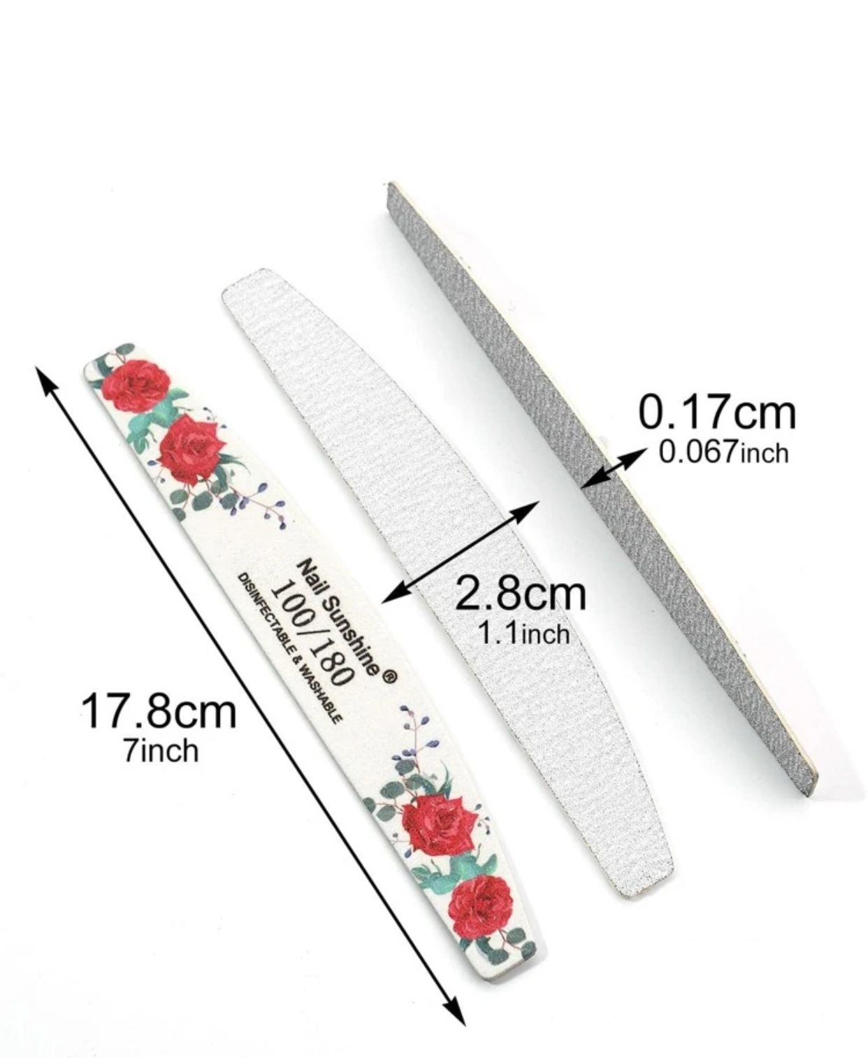 Nail Sunshine Half-moon Shape Wood Piece Nail Art Sanding File, Random Pattern 100/180 Grit.