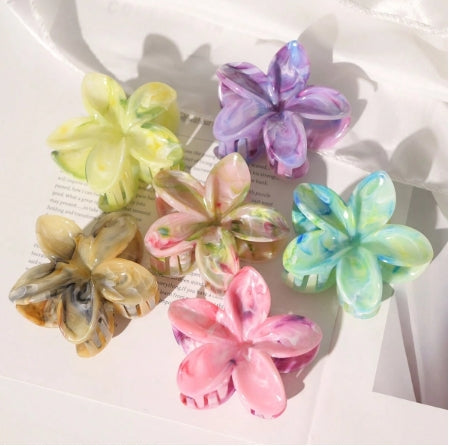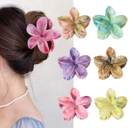 1pc Marble Flower Hair Clips 8cm (Random Colors)