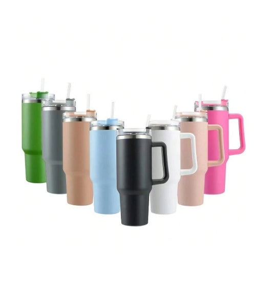 1pc Stainless Steel Insulated Water Cup with Straw 1200ml