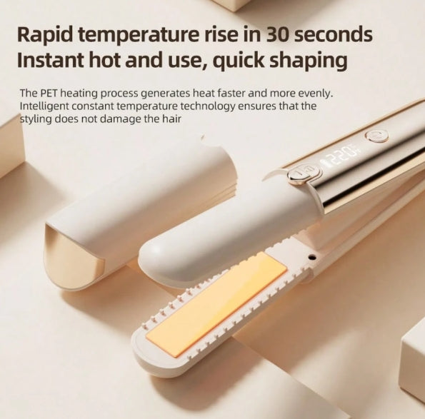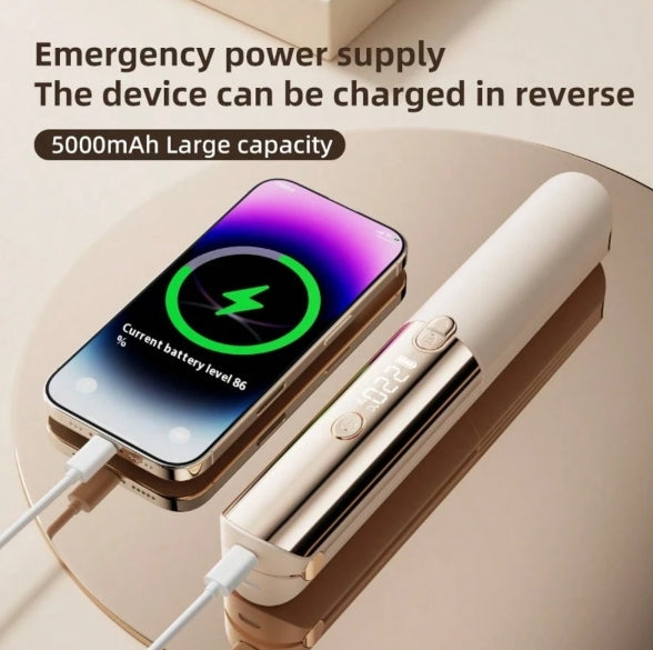 Transform your hair styling routine with this versatile 2-in-1 straightener and curler. Switch effortlessly between sleek straight styles and bouncy curls with dual functionality in one compact device. Six adjustable temperature settings let you customize heat for your hair type, while the LCD display shows real-time temperature in Celsius or Fahrenheit. The safety lock prevents accidental activation, and the included dust cover keeps it clean. Powered by a 5000mAh rechargeable battery with USB charging, this portable styler goes wherever you do—perfect for travel or everyday use.