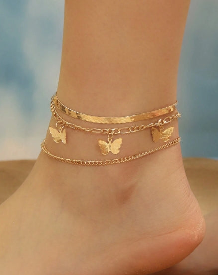 3pcs butterfly ankle strap with chain