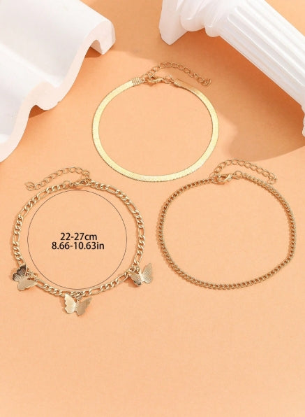3pcs sea butterfly ankle strap with chain embellishment, suitable for holiday or daily use.