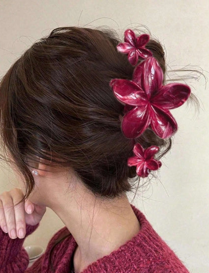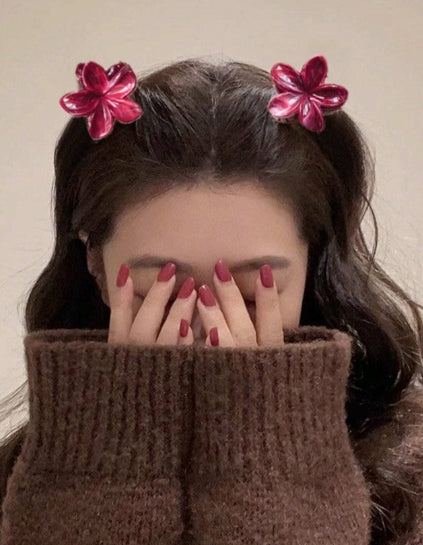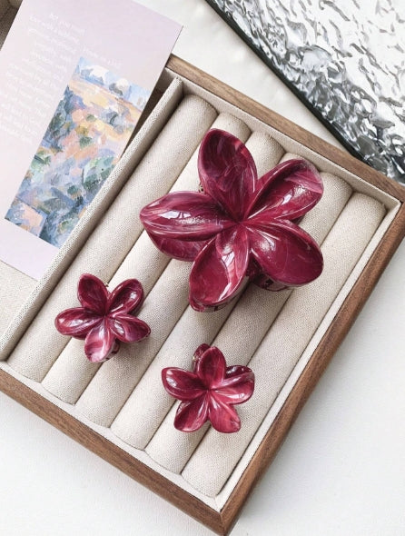 3pcs Floral Hair Clips Red Smudge (1L + 2S)