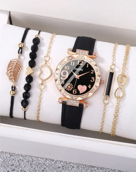 6pcs/set Jewelry Set Personalized Star Quartz Watch Youth Casual Daily Wear.