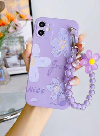 Anti-Fall Purple Phone Case with Flower Stud Bracelet -- GALAXY A05