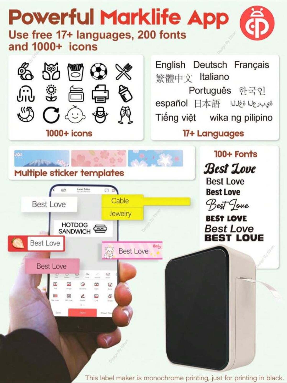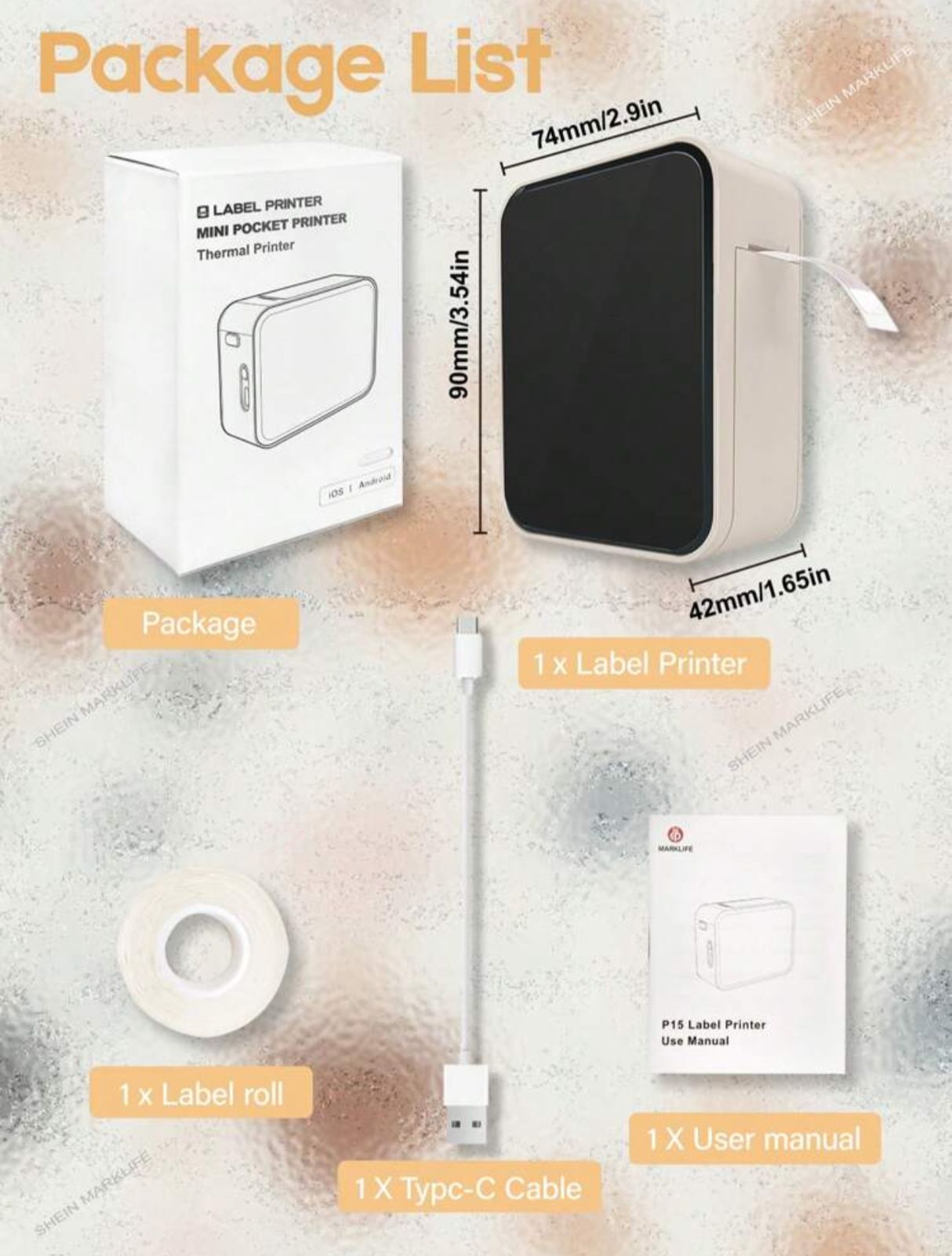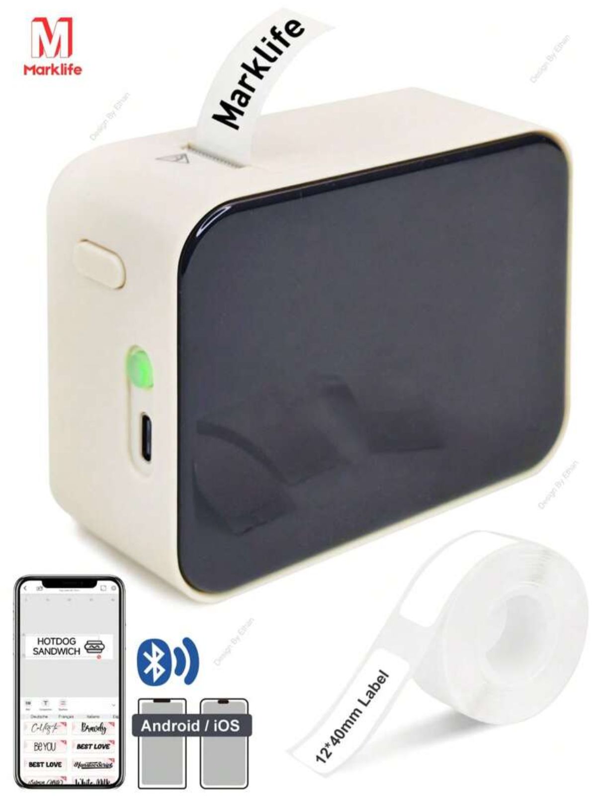 Beige Marklife Portable Bluetooth Thermal Labels Maker, Wireless Label Printer Machine, Inkless Pocket Sticker Tape Maker With 1pc 12x40mm Label Roll for Ios & Android Smartphone, Practical Labeler & Gift for Home Use and Commercial.