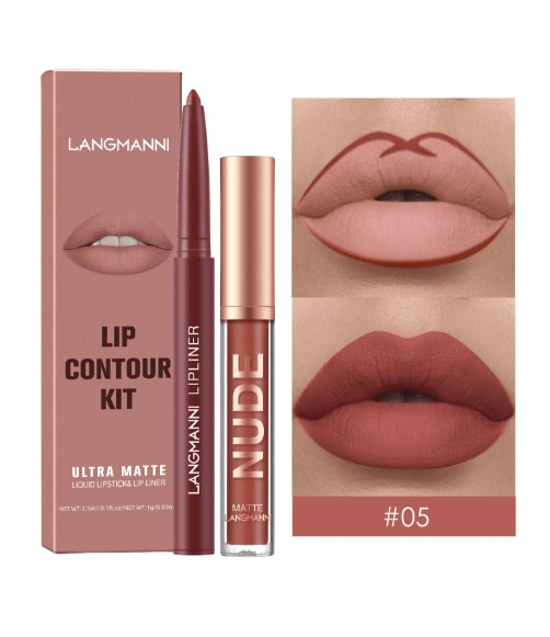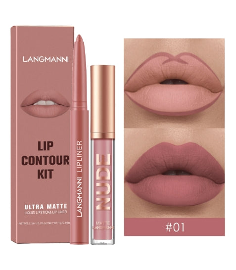LANGMANNI 2pcs Waterproof Liquid Lipstick + Lipliner Set