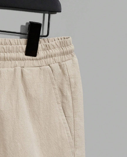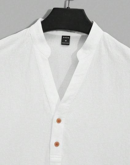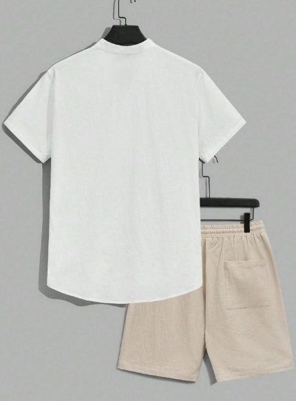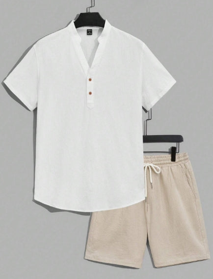 Manfinity Loose Half Button Cotton Shirt Set with Zip Waist Shorts-SIZE SMALL.