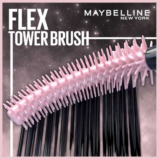 Maybelline Sky High Mascara's iconic limitless length and volume now delivers impact from every angle with space black intensity! This mascara has cosmic black pigments for long lashes with intense black pigment impact. Maximum coverage from root to tip using Maybelline's exclusive Flex Tower mascara brush that bends to volumize and lengthen each eyelash. Washable mascara formula containing bamboo extract and fibers that does not weigh down your now longer and fuller lashes.