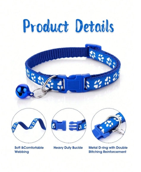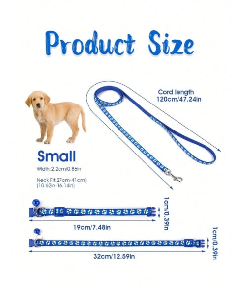 Polypropylene belt and collar set for small dogs and cats with bell, with adjustable safety buckle, elegant and safe collar.