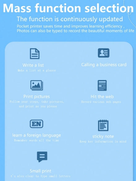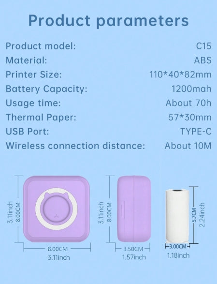 Portable Wireless Mini Printer Inkless with 10 pcs Roll of Adhesive Printing paper