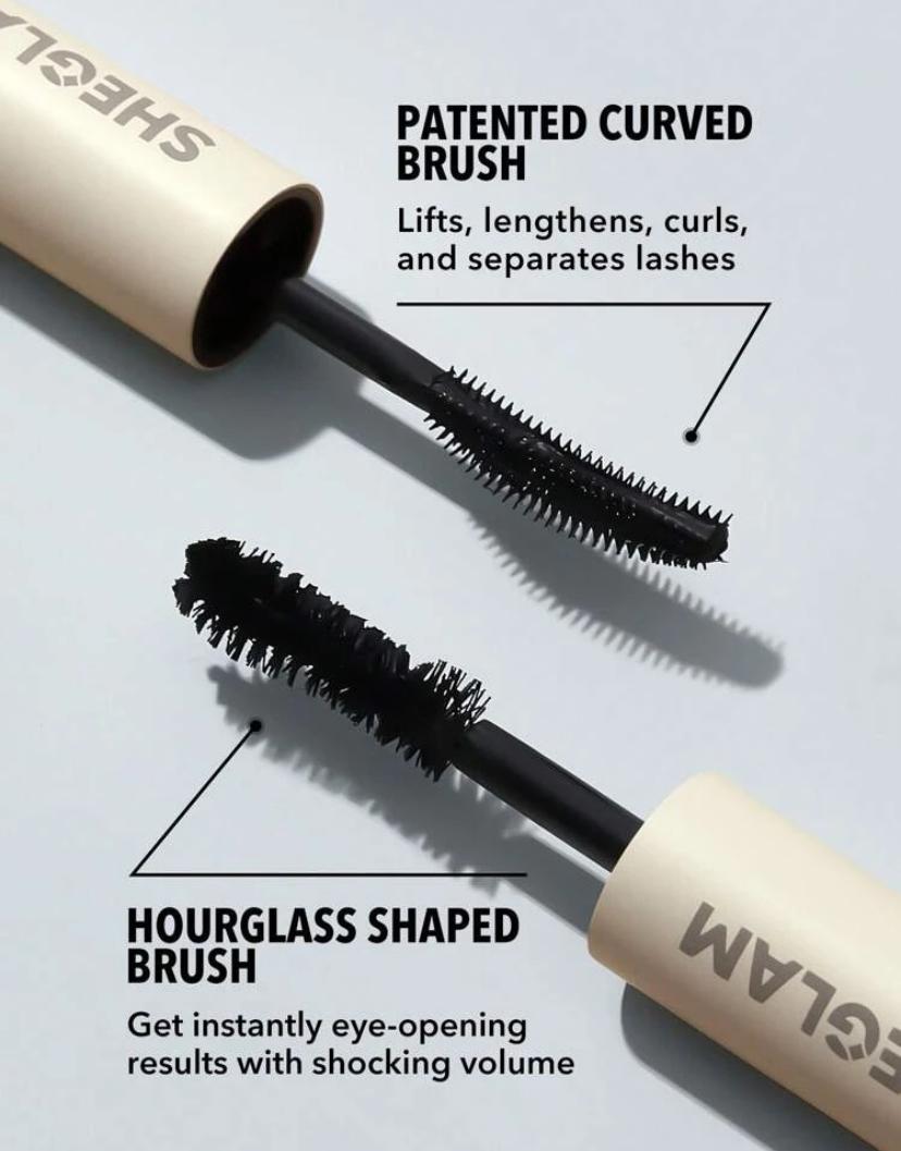 SHEGLAM All-in-One Volume & Length Mascara features a dual-ended brush with two different quick-drying, smudge proof, yet washable formulas. Apply together or separately for a totally custom, clump-free look that delivers intense volume, length, curl, and separation!