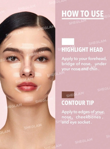 Achieve a smooth and sculpted nose or overall beat in seconds with our creamy, foolproof 2-in-1 highlight and contour pen! One end features a thin highlighter tip to help you brighten the bridge or tip of your nose with precision. The other end features a contour tip to help you naturally sculpt your nose. Easily outline and create three-dimensional yet natural-looking contours with just one stroke!
