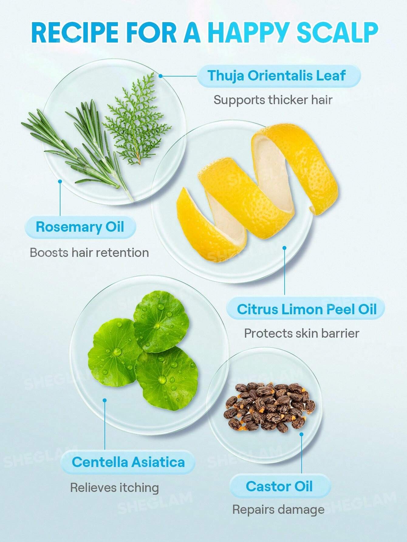The 3D roller massager design soothes the scalp while promoting absorption of the serum. Enriched with a variety of exceptional botanical ingredients: Centella Asiatica Extract effectively relieves itching and protects the scalp barrier; Platycladus Orientalis Leaf Extract promotes thicker hair; Castor Oil repairs damage and enhances shine; Lemon Peel Oil moisturizes and smoothes, strengthening the skin barrier; Rosemary Oil promotes hair growth and soothes scalp discomfort. This multi-ingredient formula works synergistically to effectively relieve scalp concerns such as itching, redness, breakage, and dandruff, leaving your scalp healthy and your hair stronger and shinier.