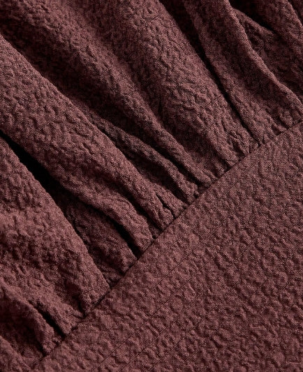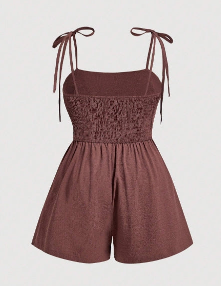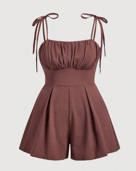 SHEIN MOD Brown Solid Textured Bodycon Cropped Suit with Shoulder Straps and Side Twisted Bust.