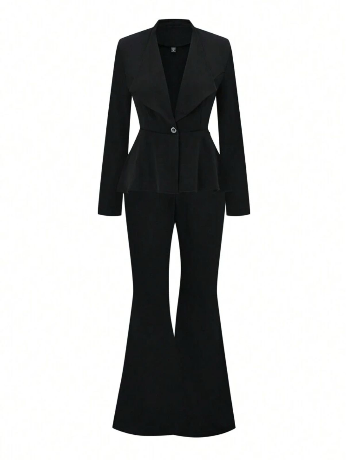 SHEIN Plus Size Black Blazer Jacket and Flare Pants Suit --SIZE 1XL