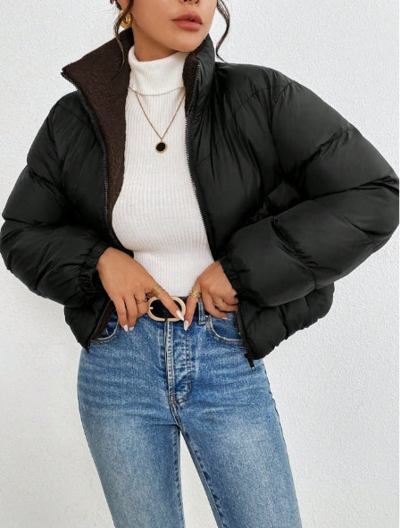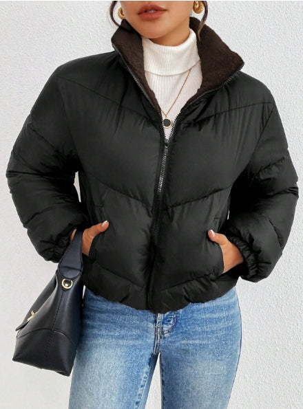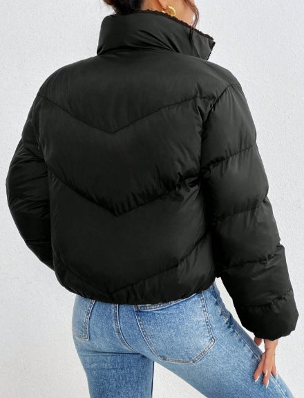 Women's High Neck Regular Black Winter Jacket Size SMALL